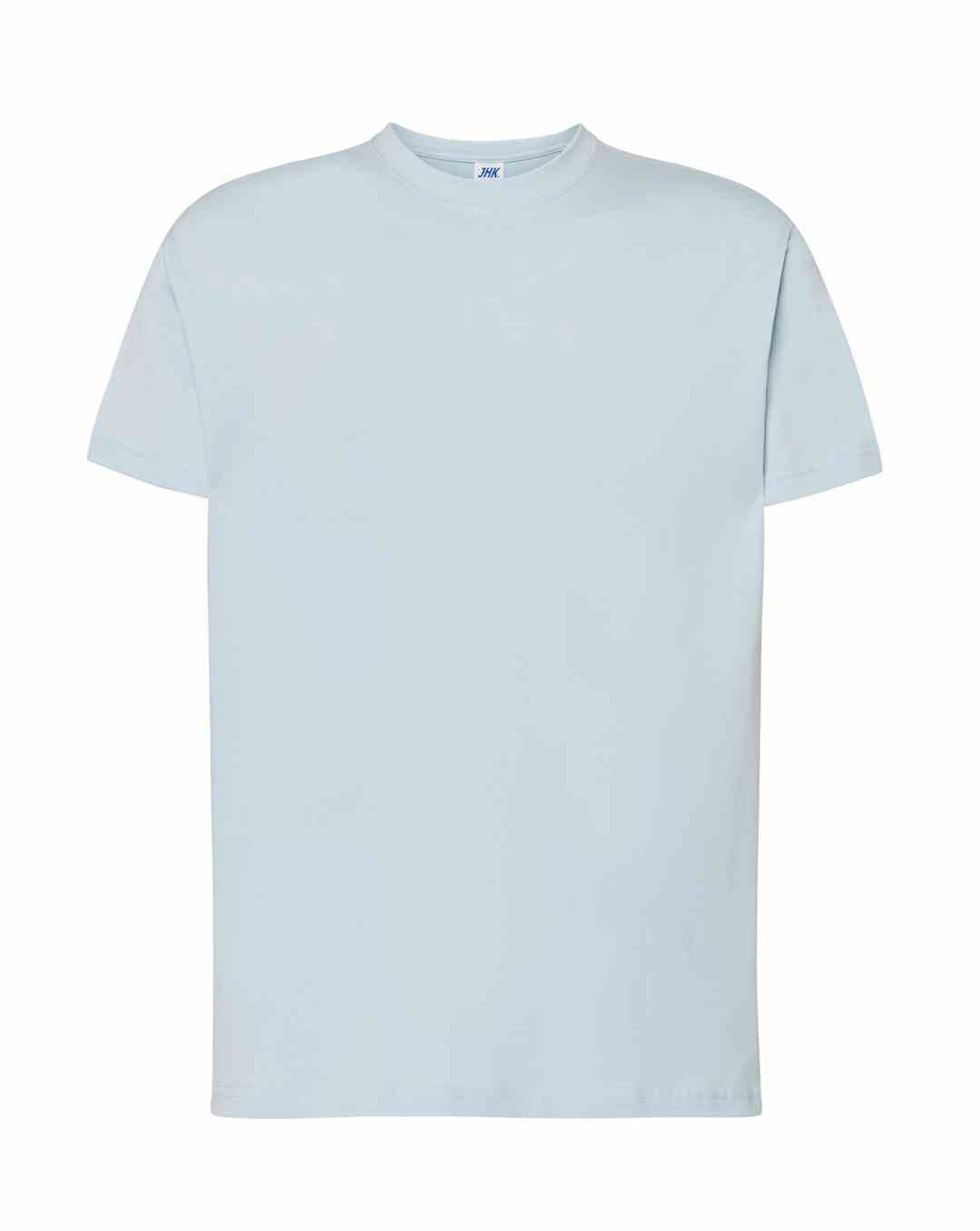 T-shirt męski z krótkim rękawem. Brak bocznych szwów. Podwójne szwy na ramionach. Wzmocniony lycrą ściągacz. Taśma wzmacniająca. 100% bawełna stabilizowana.
