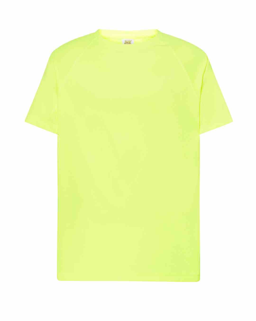 T-shirt sportowy. Krój reglan ze szwem dekoracyjnym w połowie rękawa. Oddychający materiał szybkoschnący. 100% poliester teksturowany.