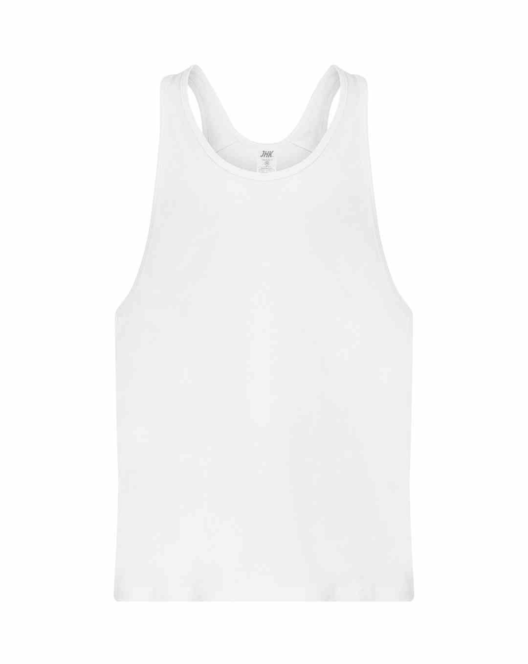 Sportowo-plażowy t-shirt bez rękawków. Wycięcie na plecach w stylu bokserskim. Model unisex. 100% bawełna.