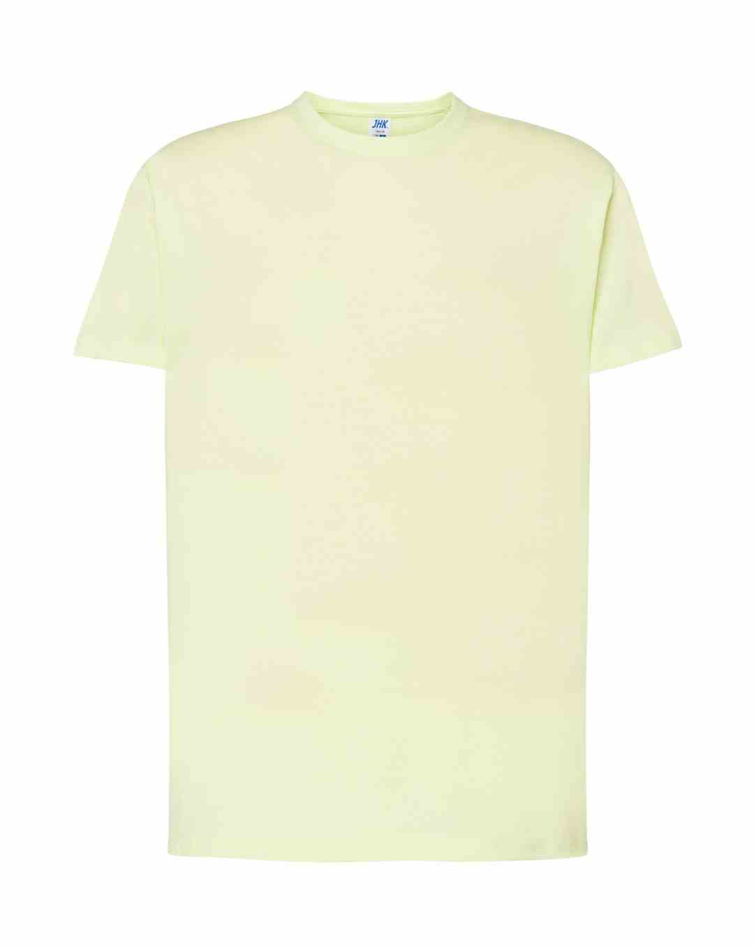 T-shirt męski z krótkim rękawem. Brak bocznych szwów. Podwójne szwy na ramionach. Wzmocniony lycrą ściągacz. Taśma wzmacniająca. 100% bawełna stabilizowana.