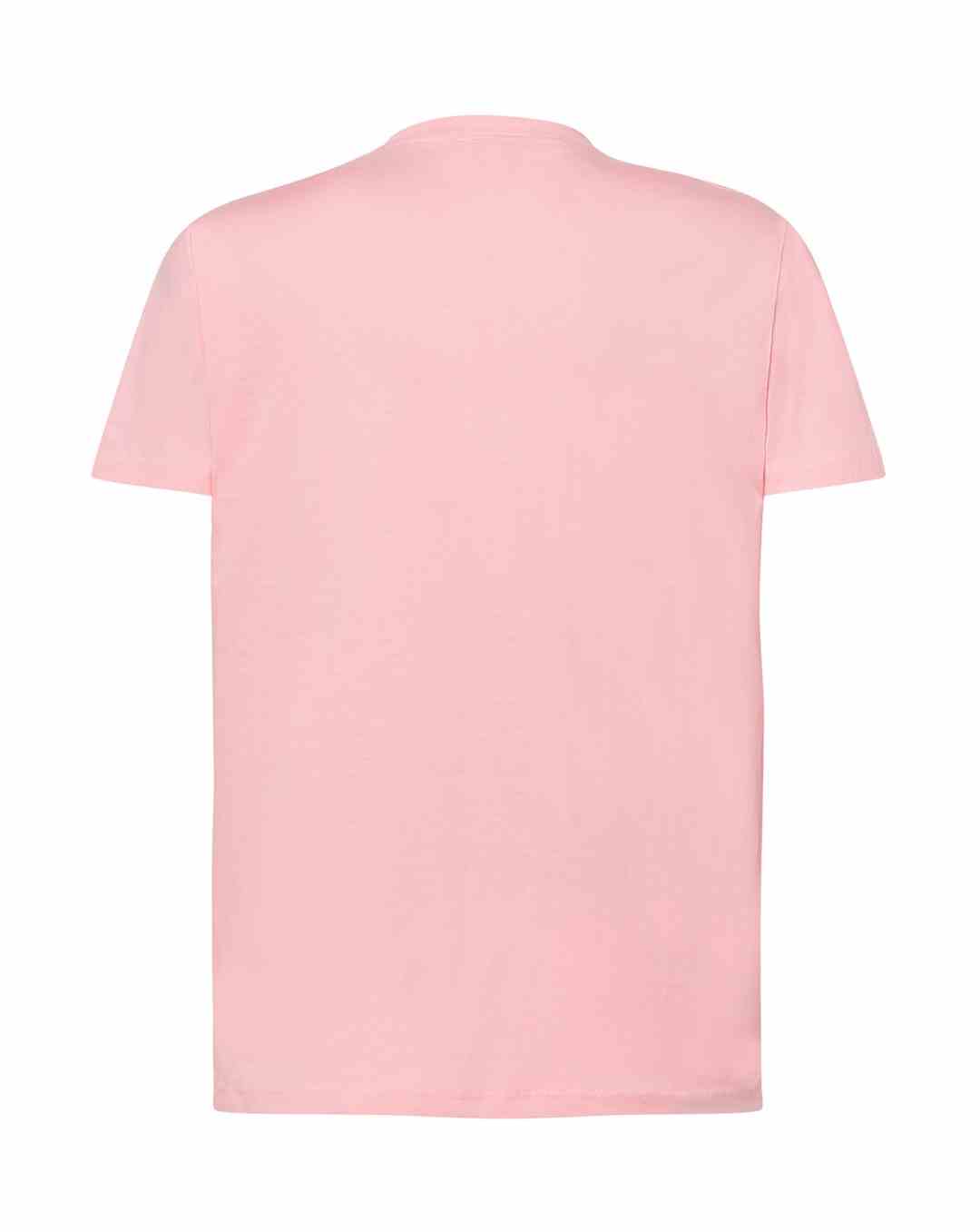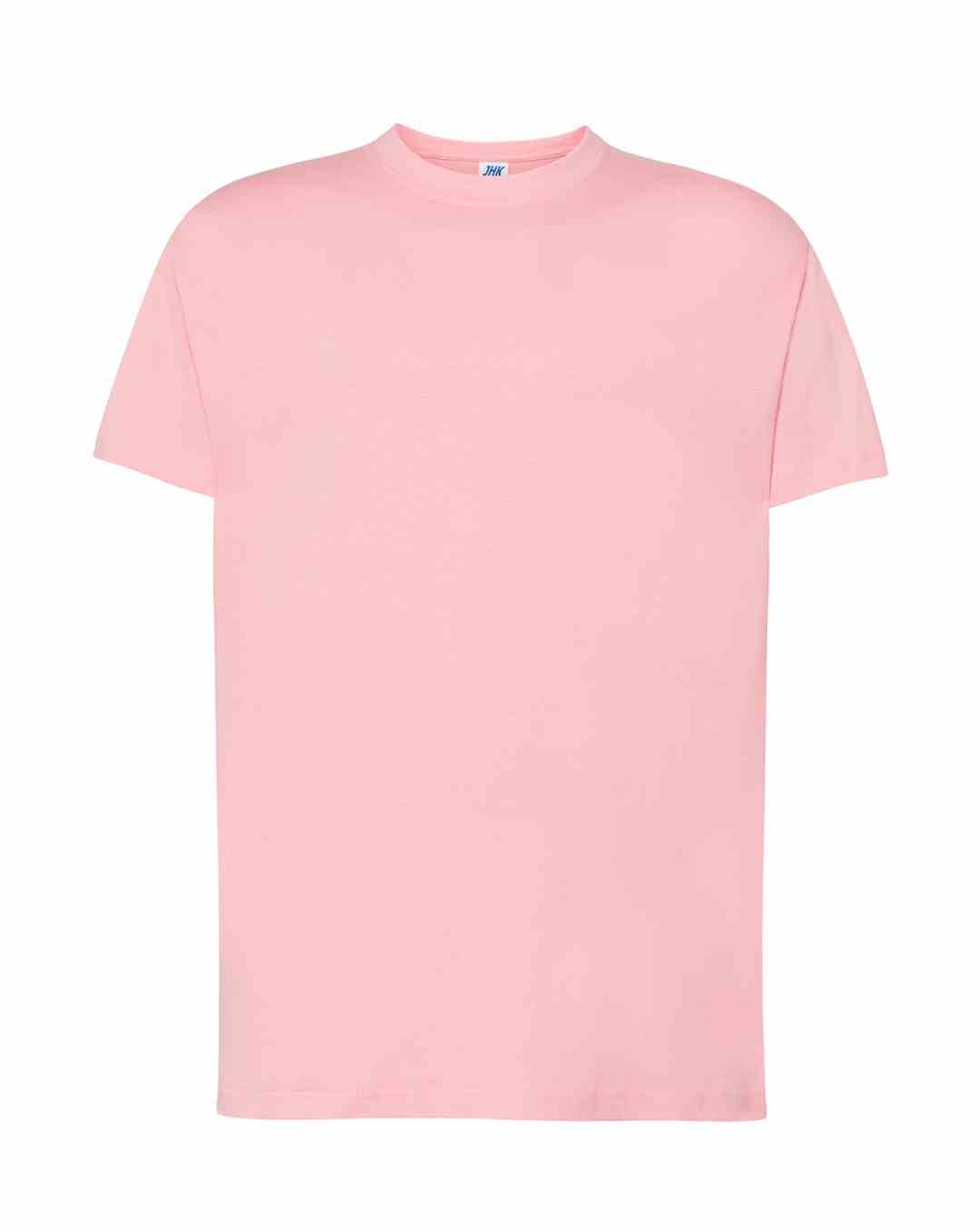 T-shirt męski z krótkim rękawem. Brak bocznych szwów. Podwójne szwy na ramionach. Wzmocniony lycrą ściągacz. Taśma wzmacniająca. 100% bawełna stabilizowana.