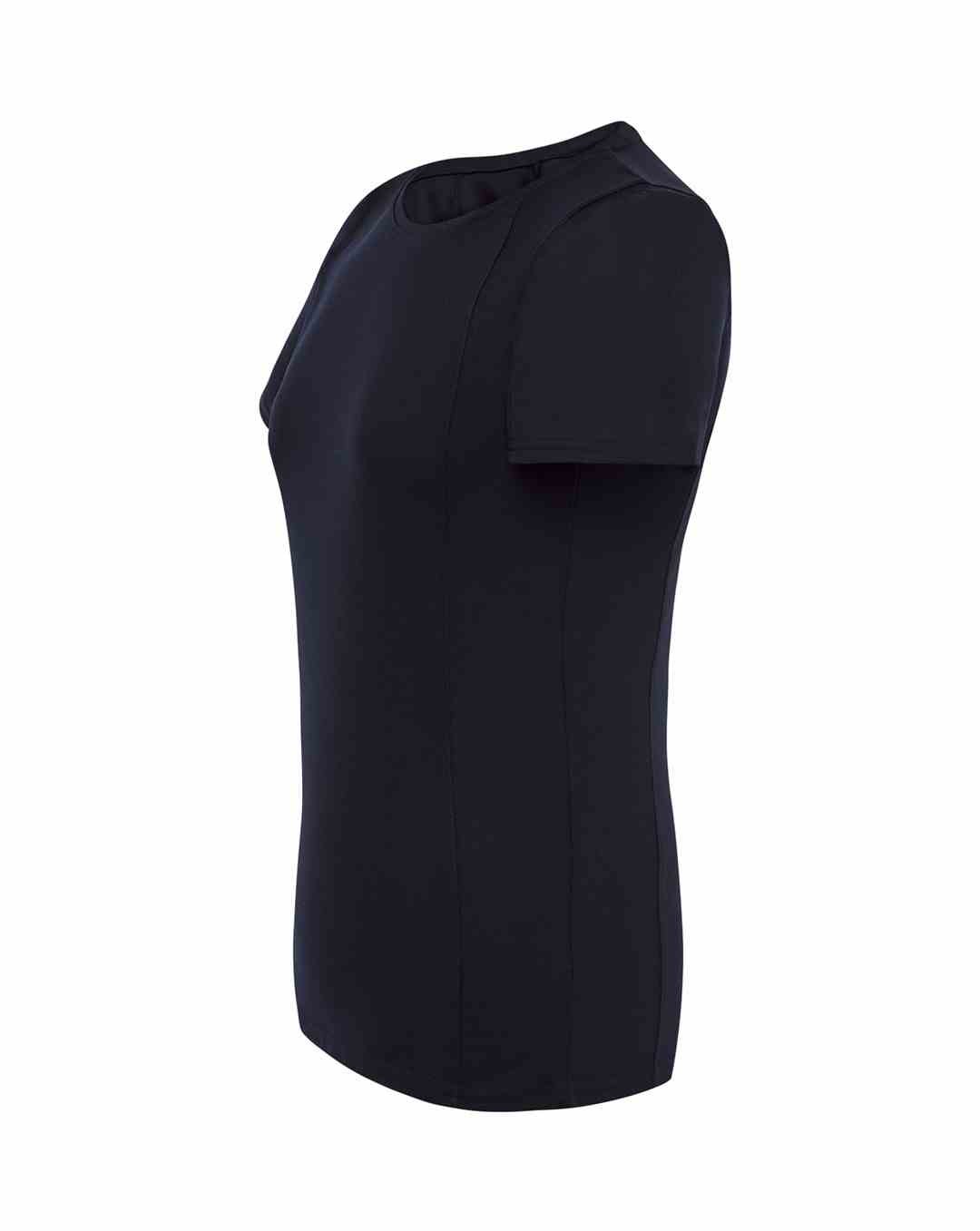 Damski t-shirt sportowy. Dekoracyjne przeszycia z przodu, z tyłu i na rękawach. Krój dopasowany do sylwetki. Oddychający materiał szybkoschnący. 100% poliester teksturowany.